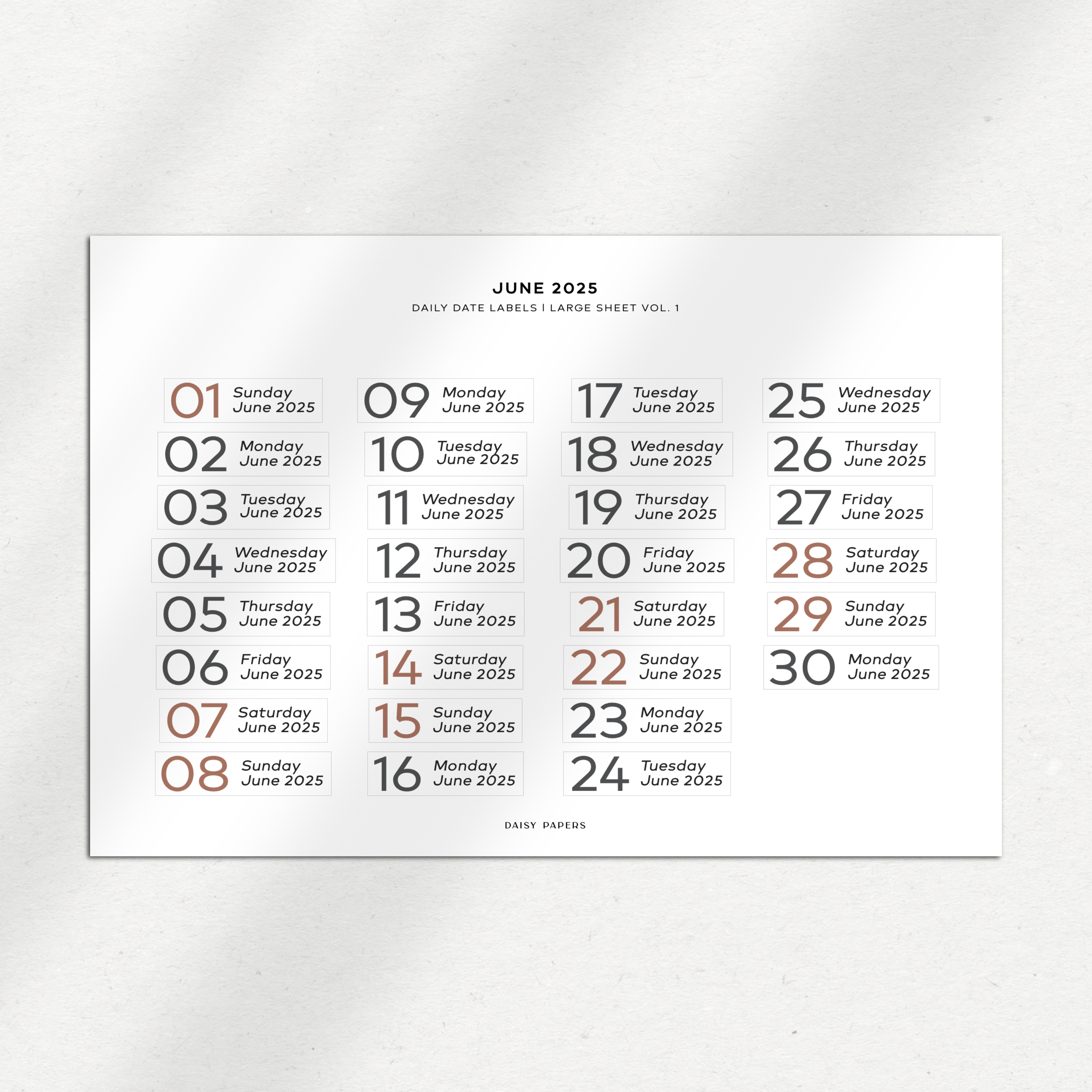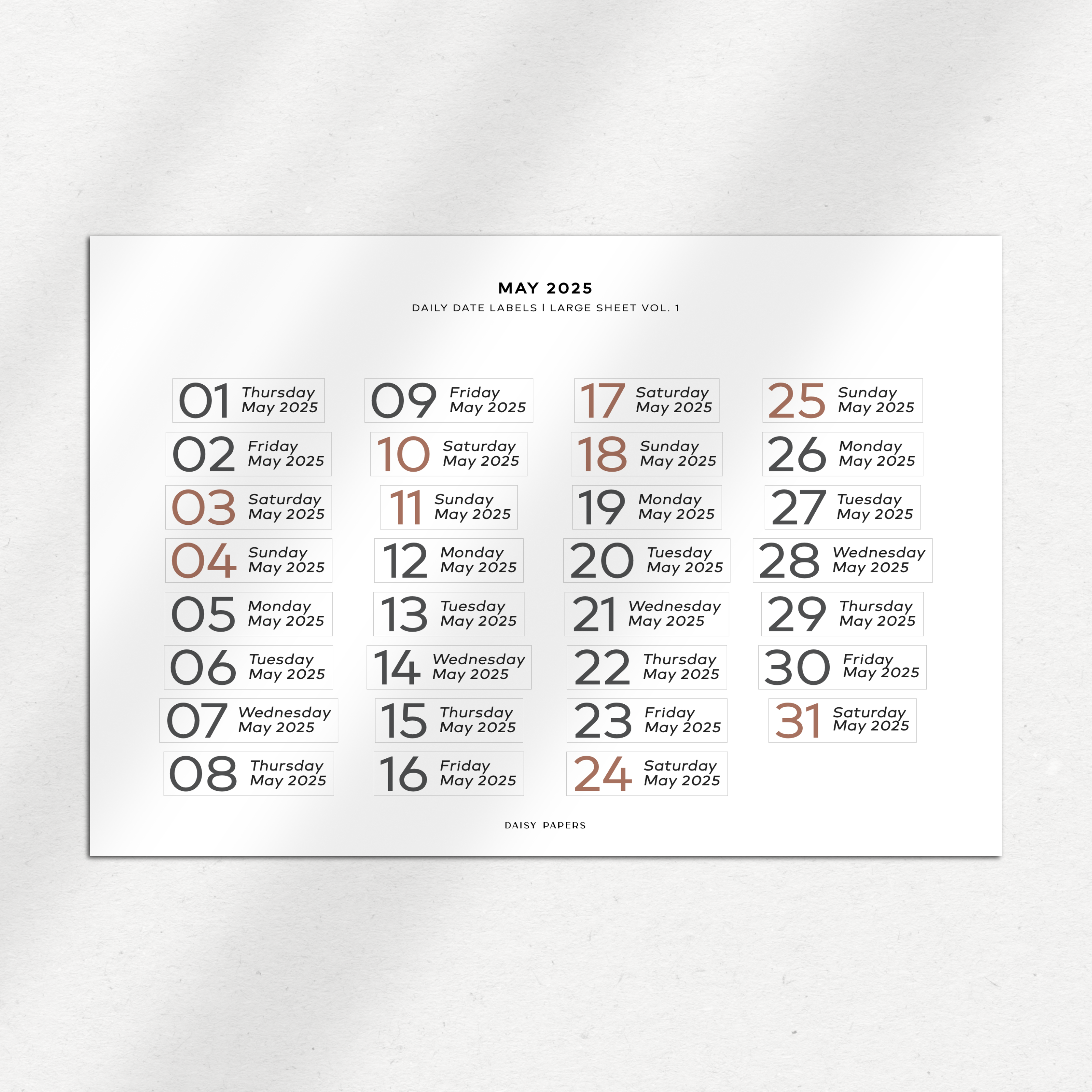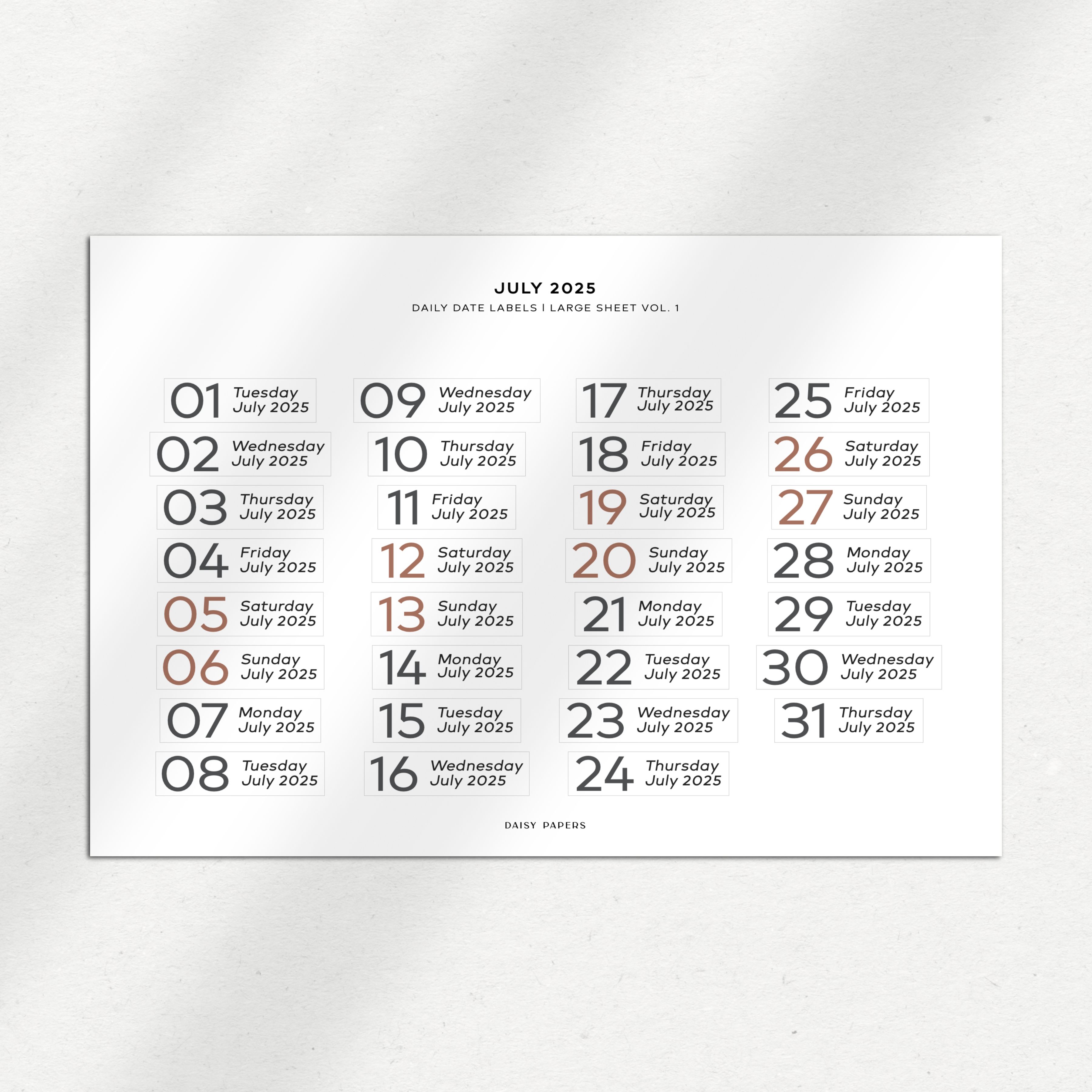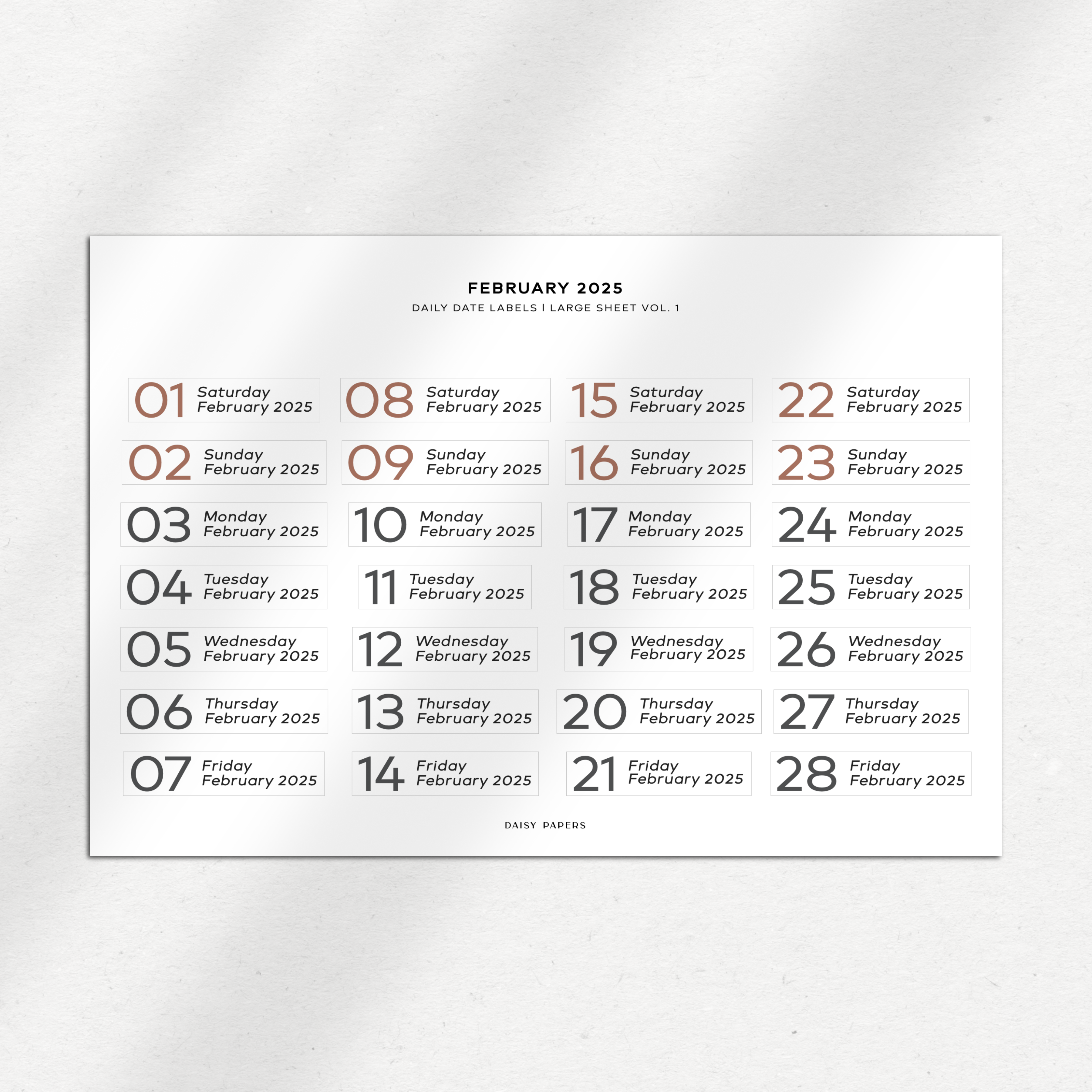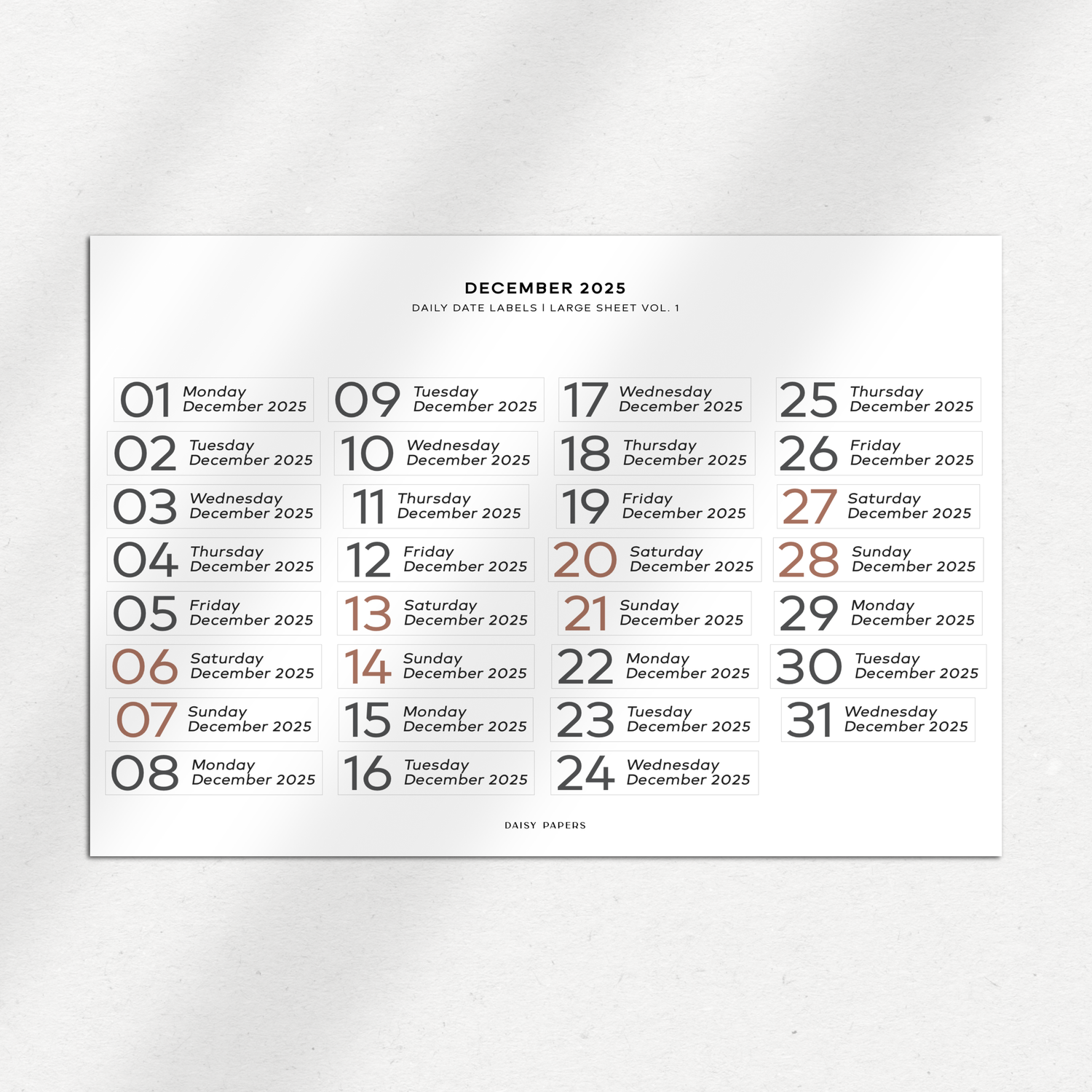 2025 Daily Date Labels - Large Sheet Vol. 1 - January to December